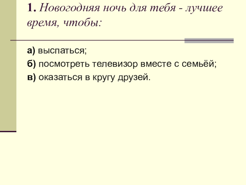 Слайд 171. Новогодняя ночь для тебя - лучшее время, чтобы:
