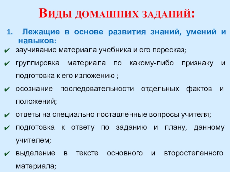Выполнение письменных домашних заданий необходимо чередовать с устными.