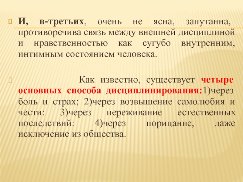 Слайд 5И, в-третьих, очень не ясна, запутанна, противоречива связь между внешней дисциплиной