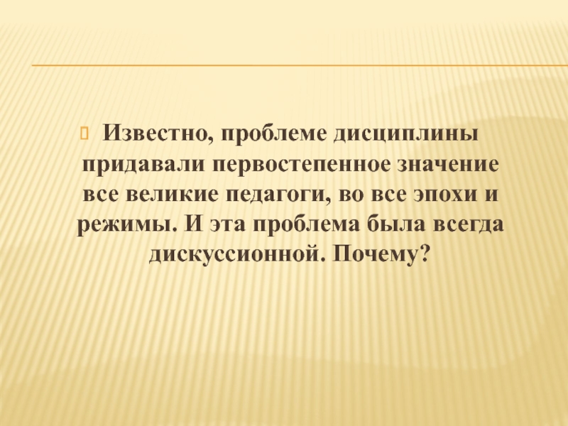 Известно, проблеме дисциплины придавали первостепенное значение все великие педагоги, во все