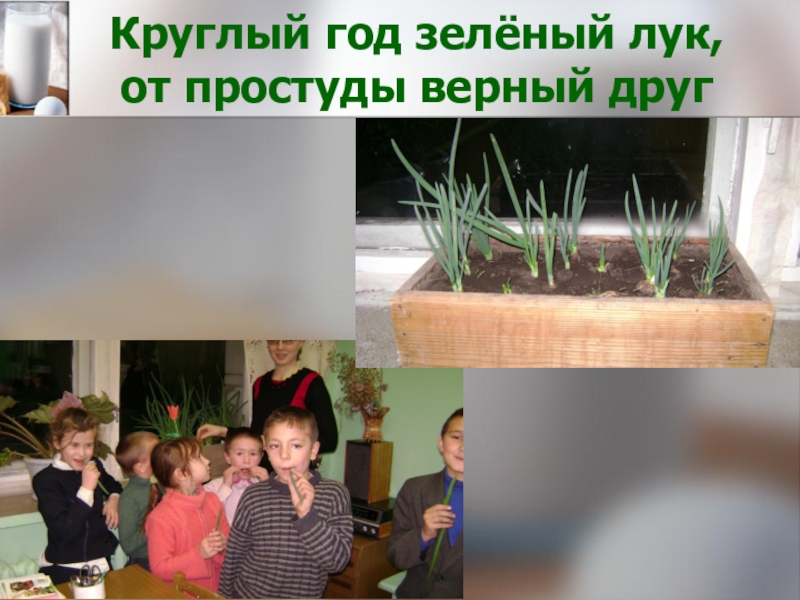 Слайд 56Круглый год зелёный лук, от простуды верный друг