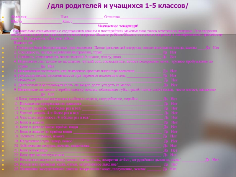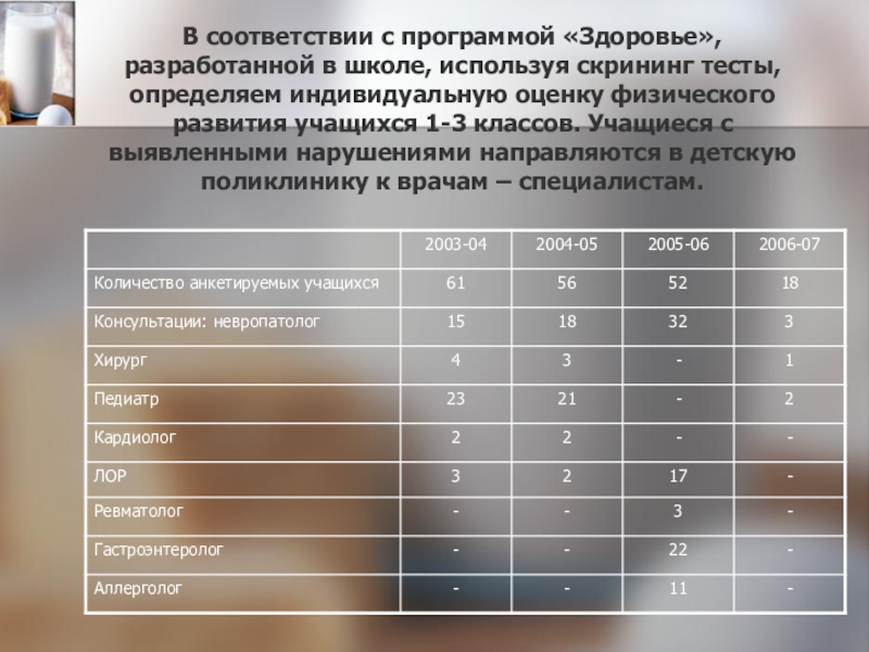 В соответствии с программой «Здоровье», разработанной в школе, используя скрининг тесты,