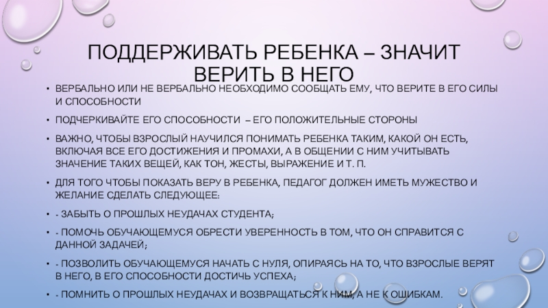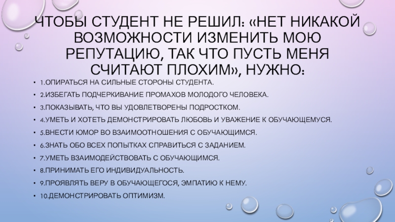 9.Проявлять веру в обучающегося, эмпатию к нему.