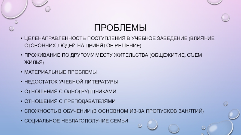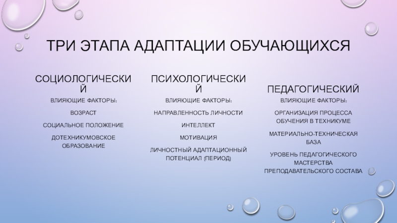 Влияющие факторы: