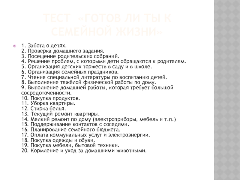 Слайд 11Тест «Готов ли ты к семейной жизни»