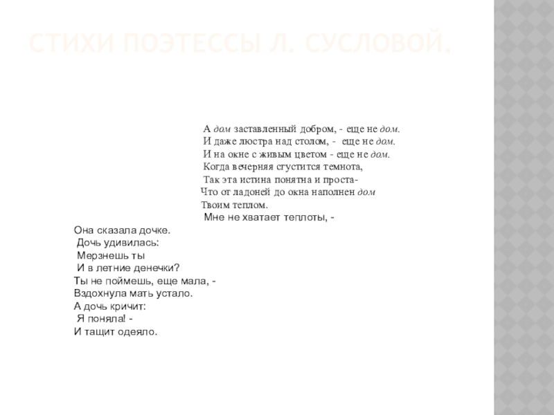 Слайд 3стихи поэтессы Л. Сусловой.