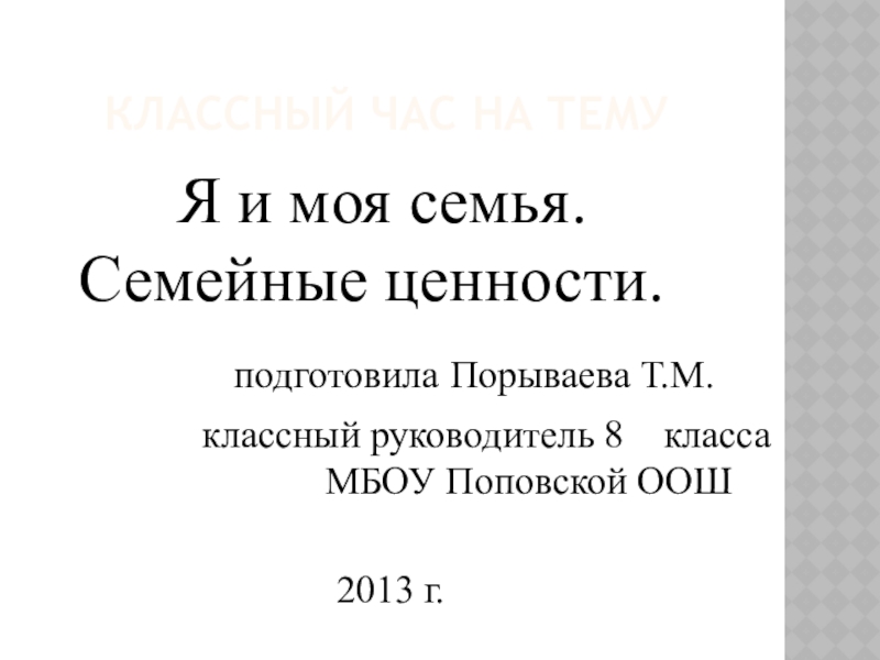 Слайд 1 Классный час на тему