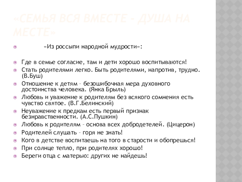 Слайд 2«Семья вся вместе - душа на месте»