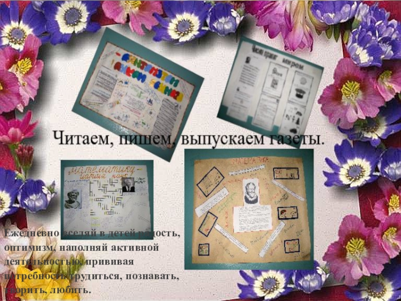 Ежедневно вселяй в детей радость, оптимизм, наполняй активной деятельностью, прививая потребность трудиться, познавать, творить, любить.