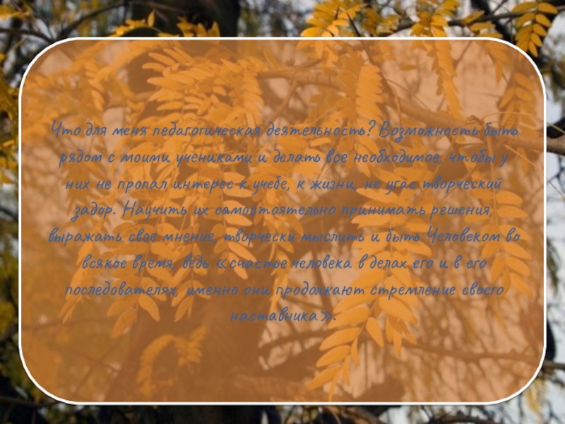 Слайд 9Что для меня педагогическая деятельность? Возможность быть рядом с моими учениками
