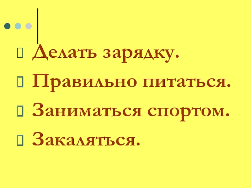 Делать зарядку. Правильно питаться. Заниматься спортом. Закаляться.