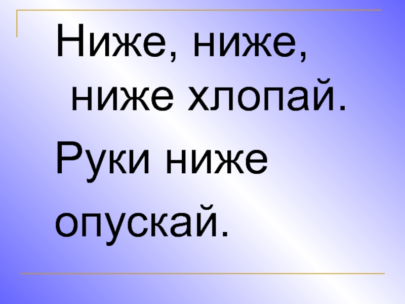 Ниже, ниже, ниже хлопай.Руки нижеопускай.