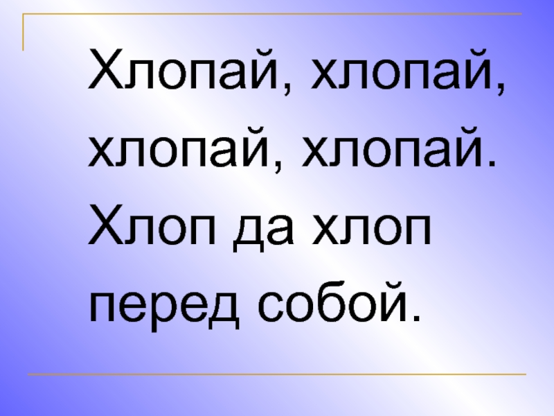 Хлопай, хлопай, хлопай, хлопай. Хлоп да хлоп перед собой.