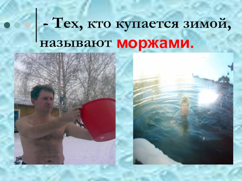 Узнал, что люди, которые купаются зимой, называются моржами.