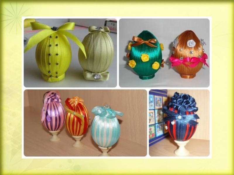 «Фантазия»- пасхальные яйца, выполненные в технике макраме, вязания, лоскутной технике.