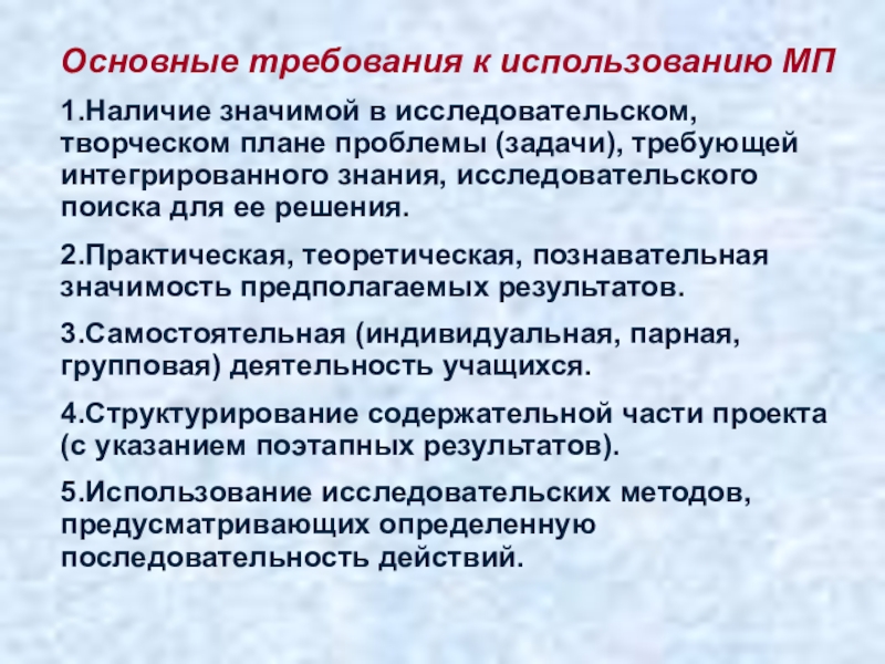 Слайд 6Основные требования к использованию МП