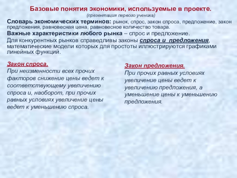 Слайд 17Базовые понятия экономики, используемые в проекте.
