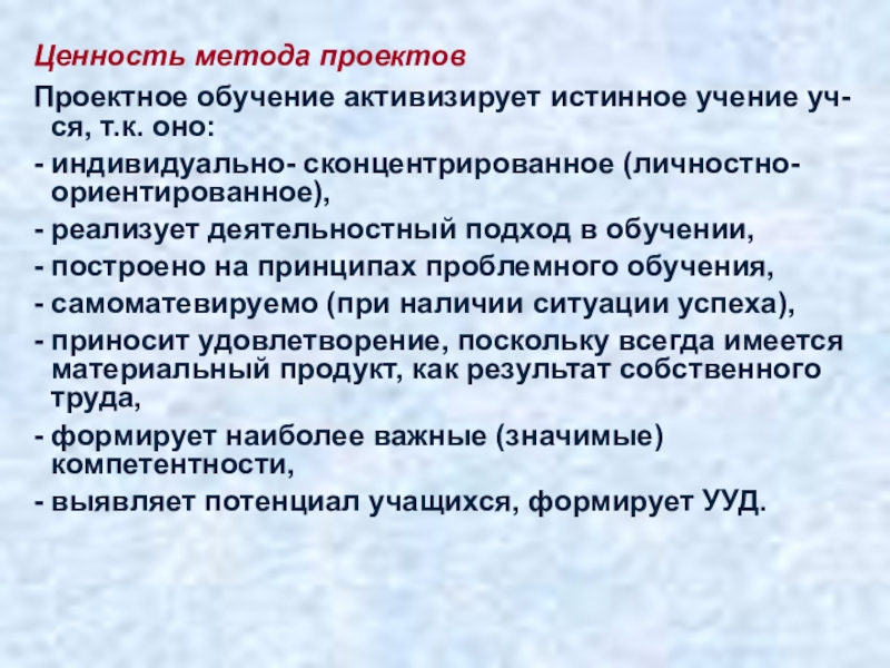 Слайд 21Ценность метода проектов