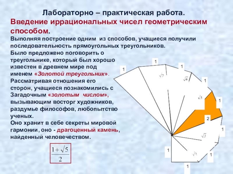 решении задачи “Золотой прямоугольник золотое число”);