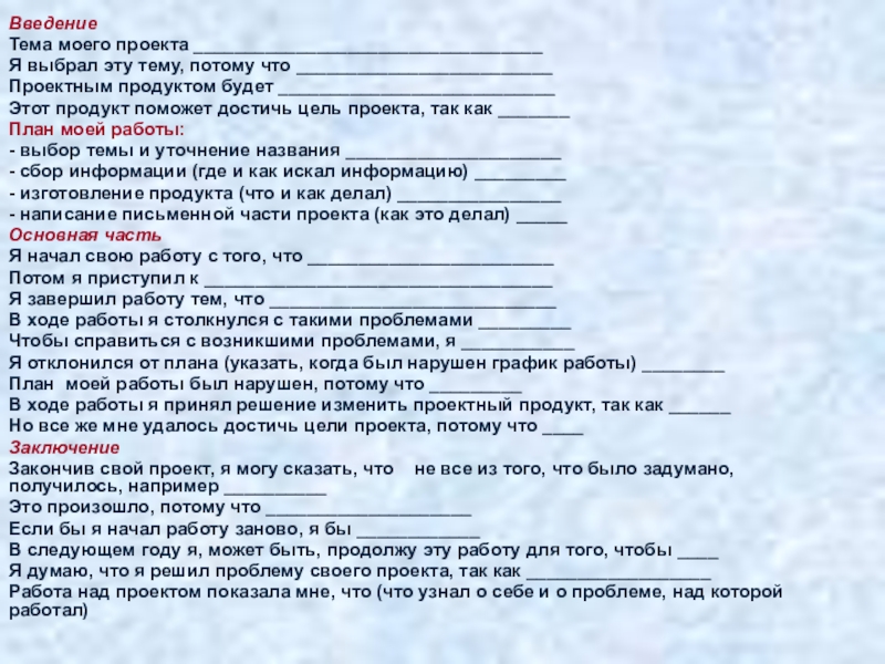- написание письменной части проекта (как это делал) _____