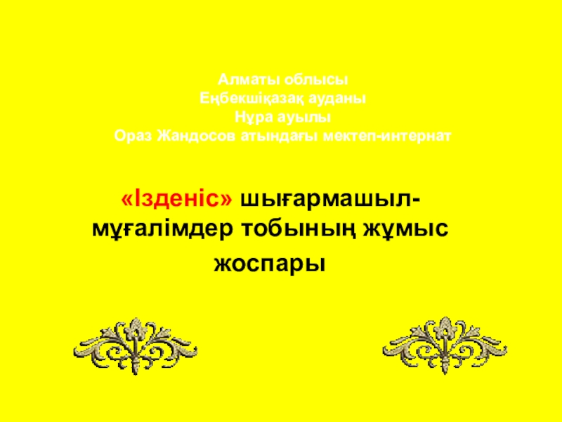 Алматы облысы Еңбекшіқазақ ауданы Нұра ауылы Ораз Жандосов атындағы мектеп-интернат«Ізденіс» шығармашыл-мұғалімдер тобының жұмыс жоспары