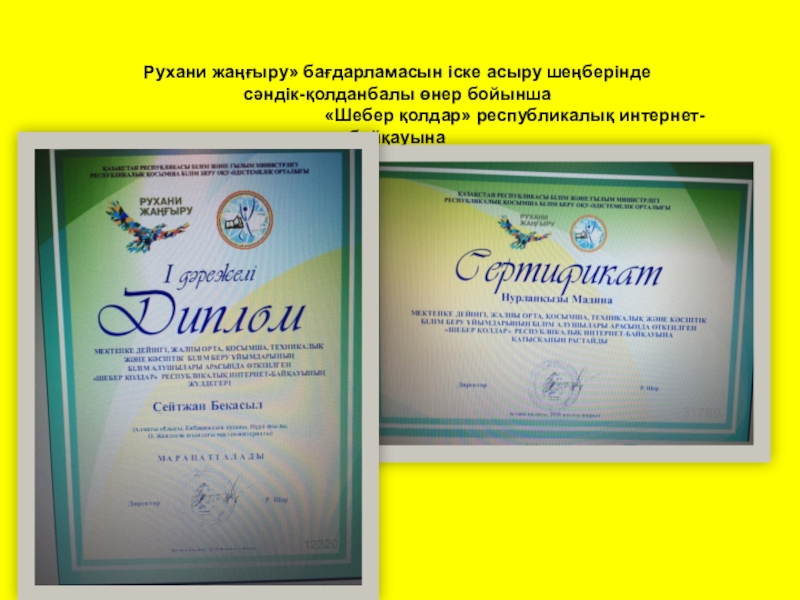 Слайд 16 Рухани жаңғыру» бағдарламасын іске асыру шеңберінде сәндік-қолданбалы өнер бойынша