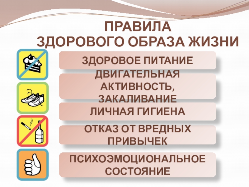Здоровый образ жизни — образ жизни человека, направленный на профи-лактику болезней и укрепление здоровья.