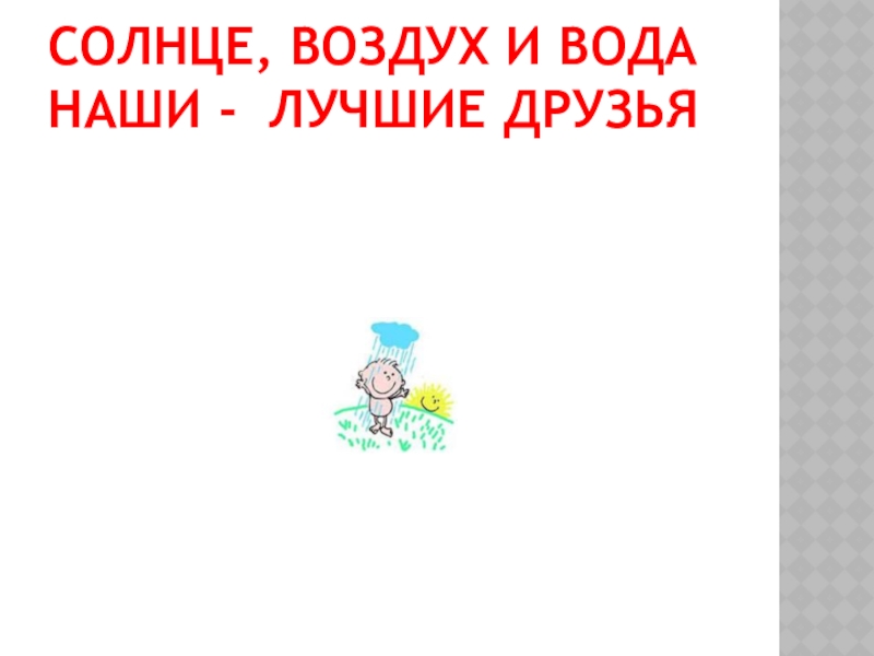 Слайд 10СОЛНЦЕ, ВОЗДУХ И ВОДА НАШИ - ЛУЧШИЕ ДРУЗЬЯ