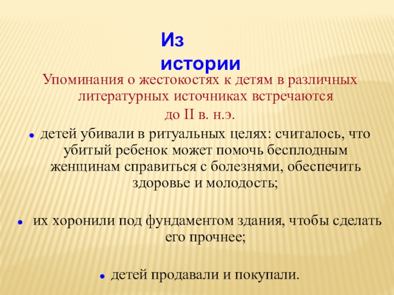 Упоминания о жестокостях к детям в различных литературных источниках встречаются