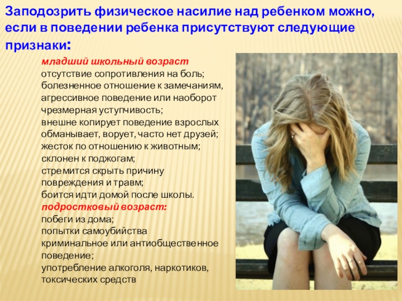 Заподозрить физическое насилие над ребенком можно, если в поведении ребенка присутствуют следующие признаки: