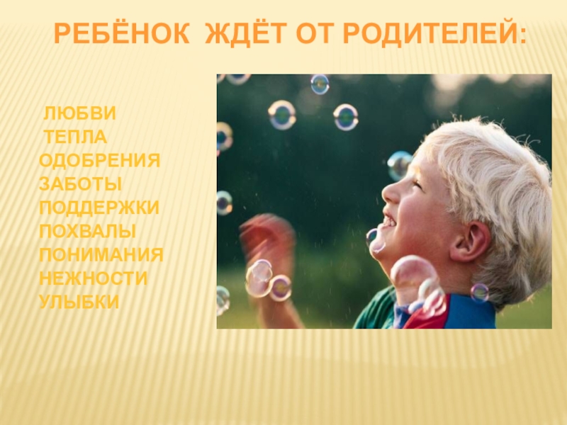 Слайд 4РЕБЁНОК ЖДЁТ ОТ РОДИТЕЛЕЙ: