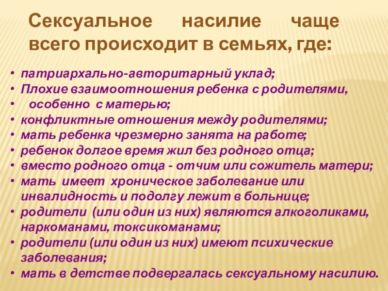 Сексуальное насилие чаще всего происходит в семьях, где: