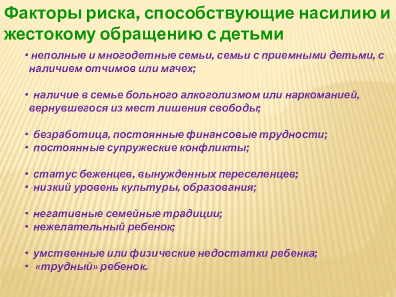 Факторы риска, способствующие насилию и жестокому обращению с детьми