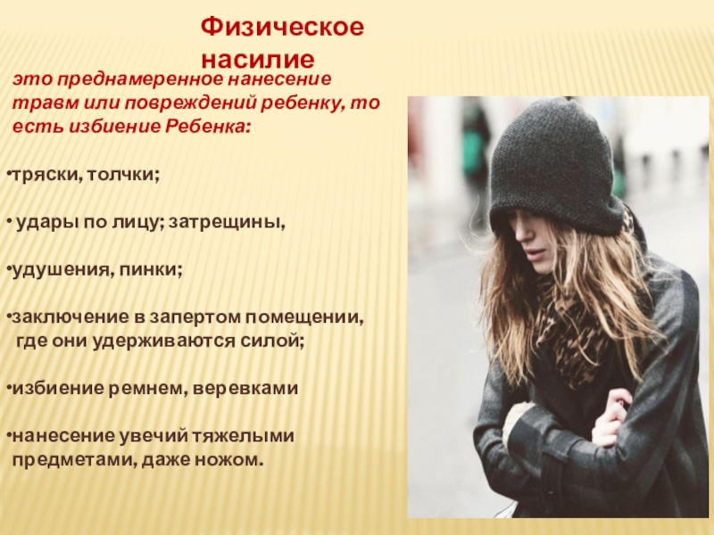 Слайд 13Признаками физического насилия над ребенком являются: