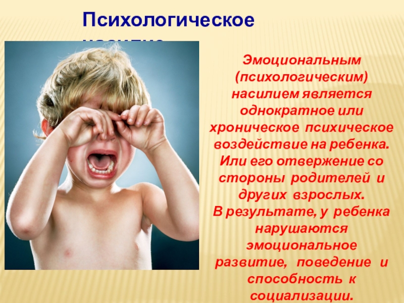 Эмоциональным (психологическим) насилием является однократное или хроническое психическое воздействие на