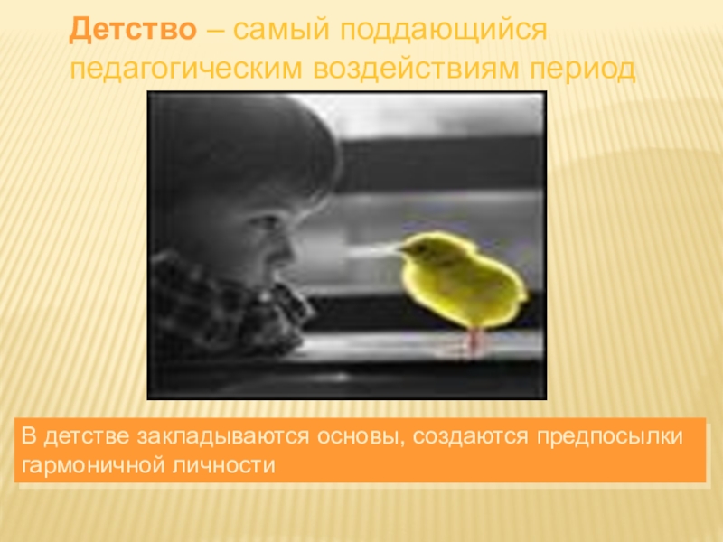 Слайд 3Детство – самый поддающийся педагогическим воздействиям период