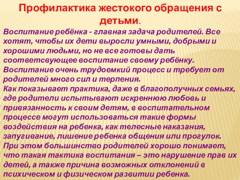 Слайд 8Профилактика жестокого обращения с детьми.