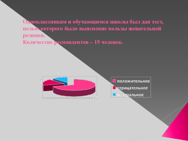 Слайд 16Одноклассникам и обучающимся школы был дан тест, целью которого было выяснение