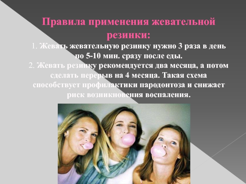 Слайд 18Правила применения жевательной резинки: