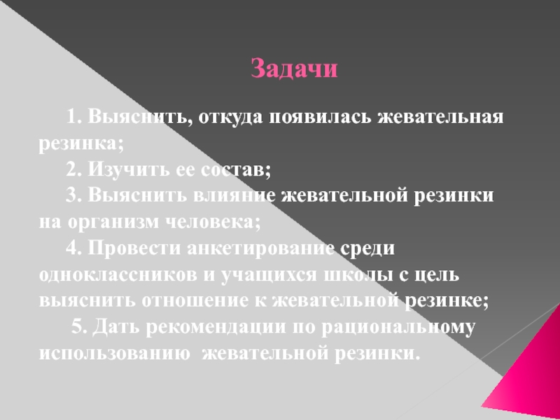 1. Выяснить, как жевательная резинка влияет на организм человека