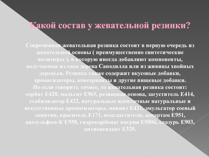 Слайд 13Какой состав у жевательной резинки?