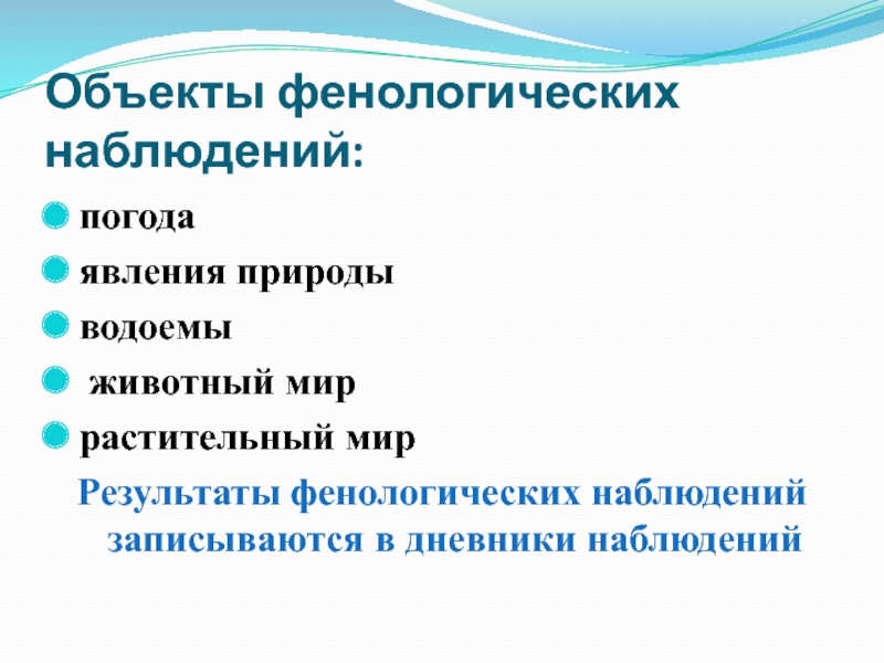 Слайд 4Объекты фенологических наблюдений: