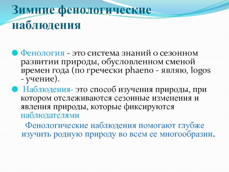Слайд 3Зимние фенологические наблюдения