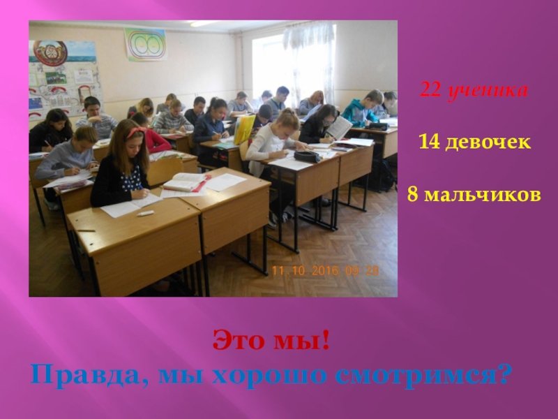 Это мы!Правда, мы хорошо смотримся?22 ученика14 девочек8 мальчиков