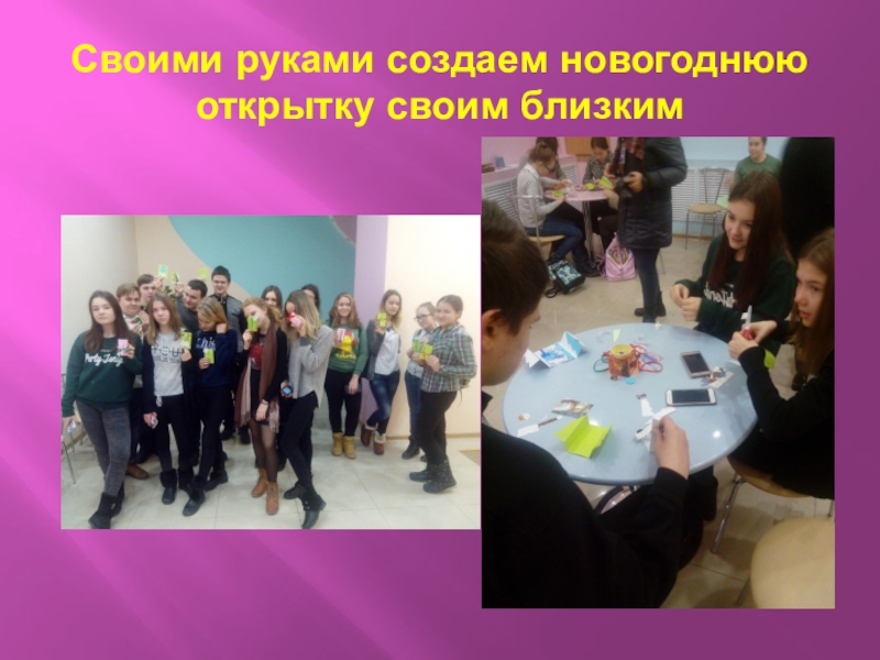 Слайд 16Своими руками создаем новогоднюю открытку своим близким