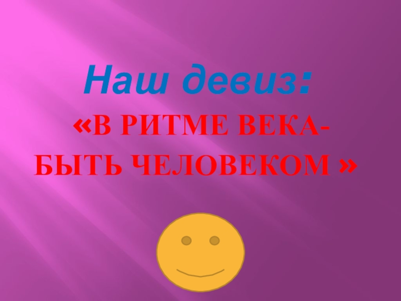 Слайд 3Наш девиз: «В РИТМЕ ВЕКА-БЫТЬ ЧЕЛОВЕКОМ »