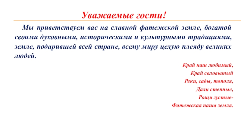 богатой своими духовными, историческими и культурными традициями, земле, подарившей всей стране, всему миру целую плеяду великих людей.