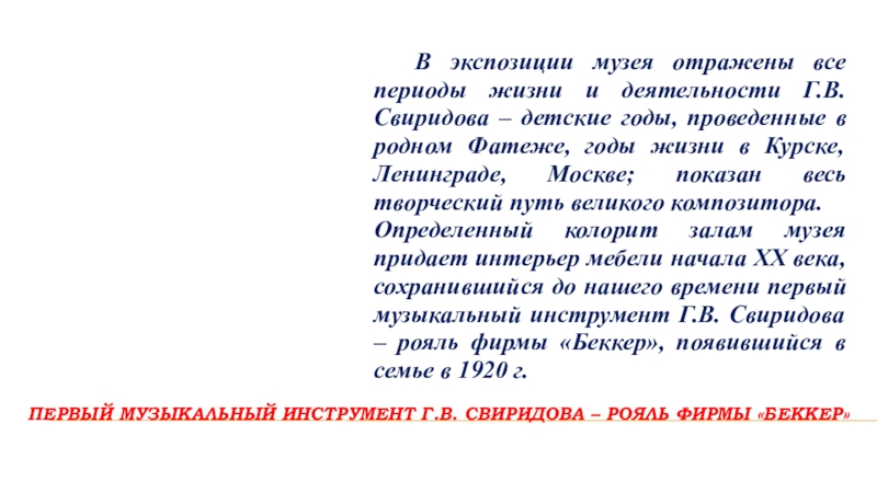 Первый музыкальный инструмент Г.В. Свиридова – рояль фирмы «Беккер»