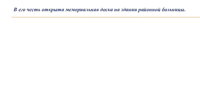 Слайд 19В его честь открыта мемориальная доска на здании районной больницы.