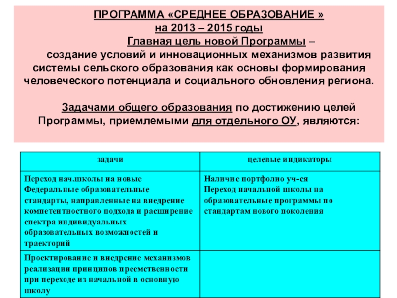 в свете реализации целевой программы